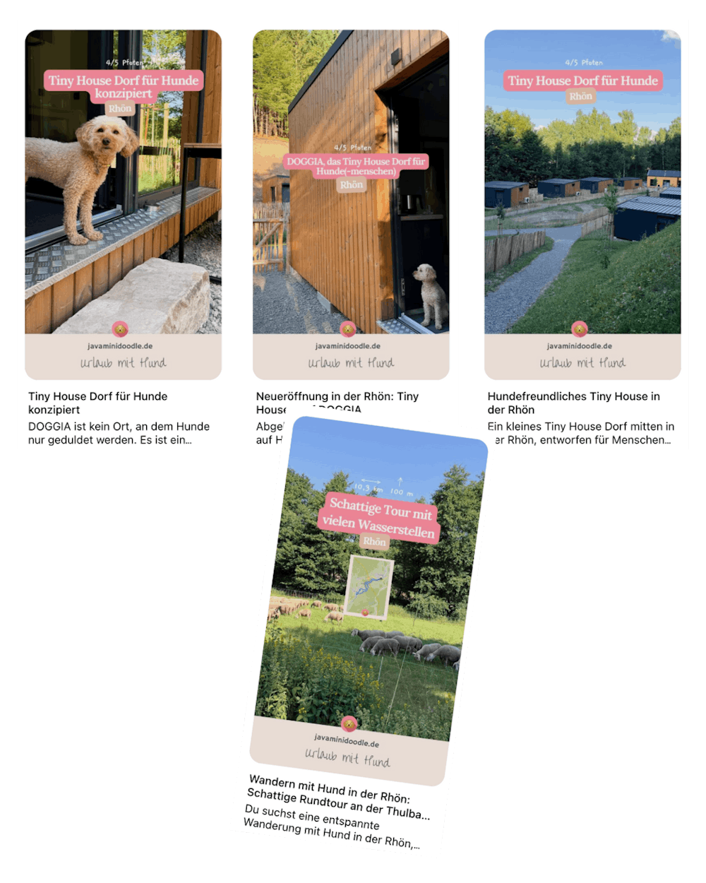 Vier gezielt erstellte Mood-Pins zur Unterkunft, zum Erfahrungsbericht und zum Thema „Urlaub mit Hund in der Rhön“ wurden veröffentlicht und suchmaschinenfreundlich betextet. Sie sorgen dafür, dass DOGGIA nicht nur im Moment der Kampagne sichtbar war, sondern auch Wochen und Monate später organisch gefunden wird, vor allem durch Menschen, die konkret nach hundefreundlichen Reiseinspirationen suchen.