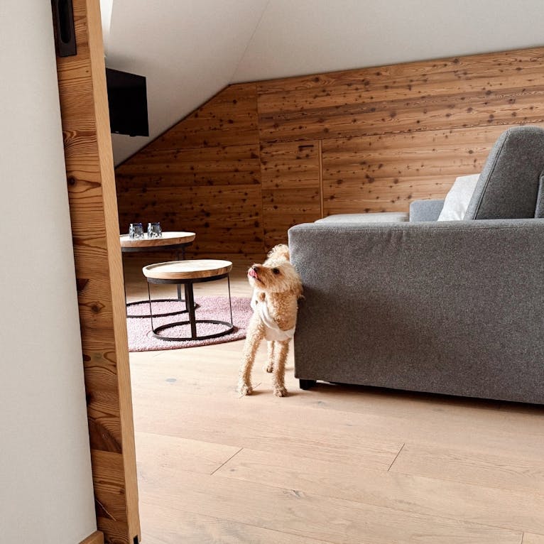 Das Hotel Bergzeit ist ein familiengeführtes Vier-Sterne-Hotel mit Boutique-Charakter. Es gibt verschiedene Zimmerkategorien, darunter Suiten mit Bergblick, Doppelzimmer mit Balkon und Suite: die großzügige Loft Suite im Dachgeschoss mit viel Licht, viel Holz und einem fantastischen Blick ins Tal. Die Zimmer sind mit Napf, Futterlöffel, Hundebett und Handtüchern für Pfoten ausgestattet. Hunde sind überall willkommen, und wer mag, kann auch im Hundespa nach der Wanderung saubere Pfoten genießen.