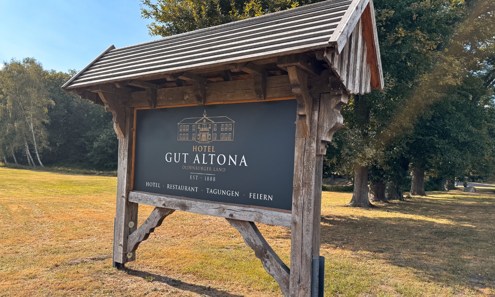 Gut Altona liegt eingebettet in die Landschaft der Wildeshauser Geest und bietet eine ruhige, ländliche Atmosphäre. Direkt vor der Tür starten Wege für entspannte Spaziergänge. Die umliegenden Felder, kleine Waldstücke und offene Flächen machen es leicht, einfach loszugehen und die Umgebung zu erkunden. Hygge-Fans empfehlen wir das Heuerhaus Café Dötlingen.