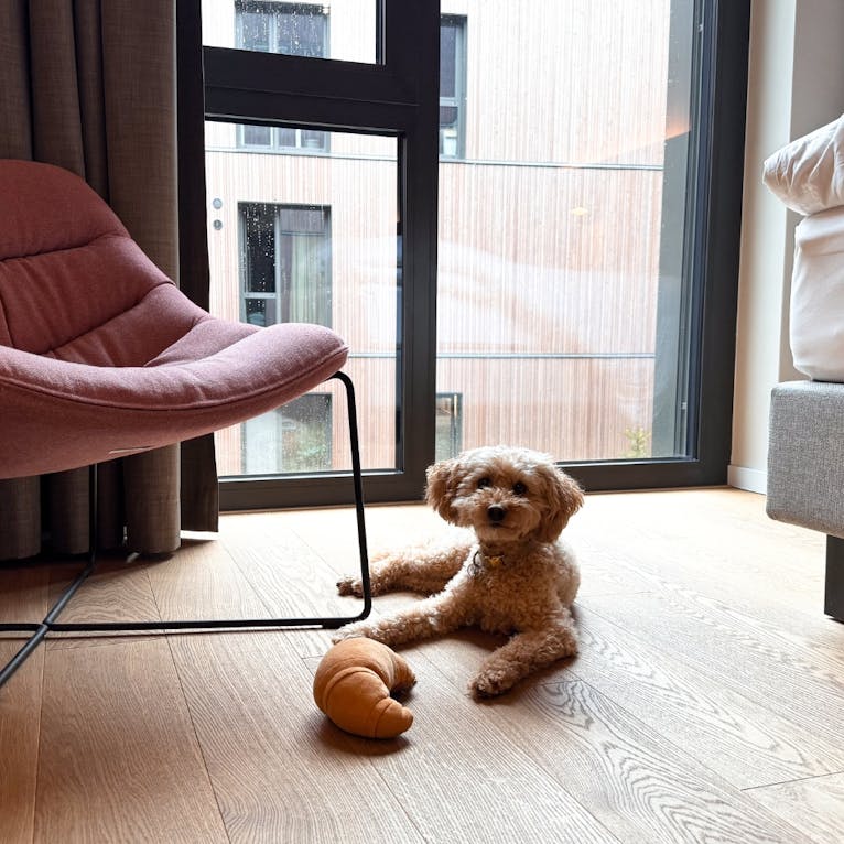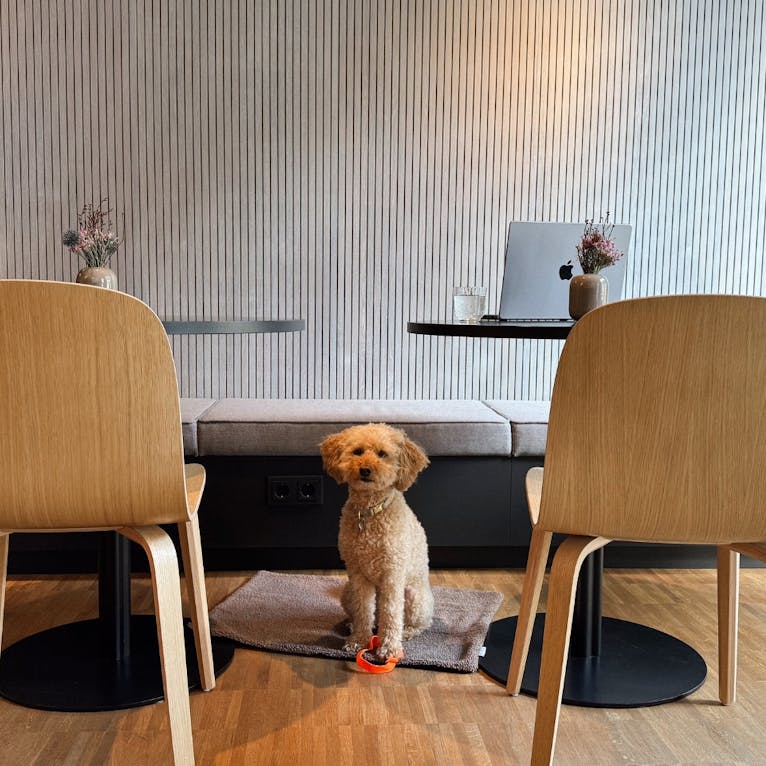 Hunde sind im HIIVE willkommen. Gegen eine Tagespauschale gibt es ein Hundetreatment mit großem Körbchen, Näpfen und Hundekeksen.