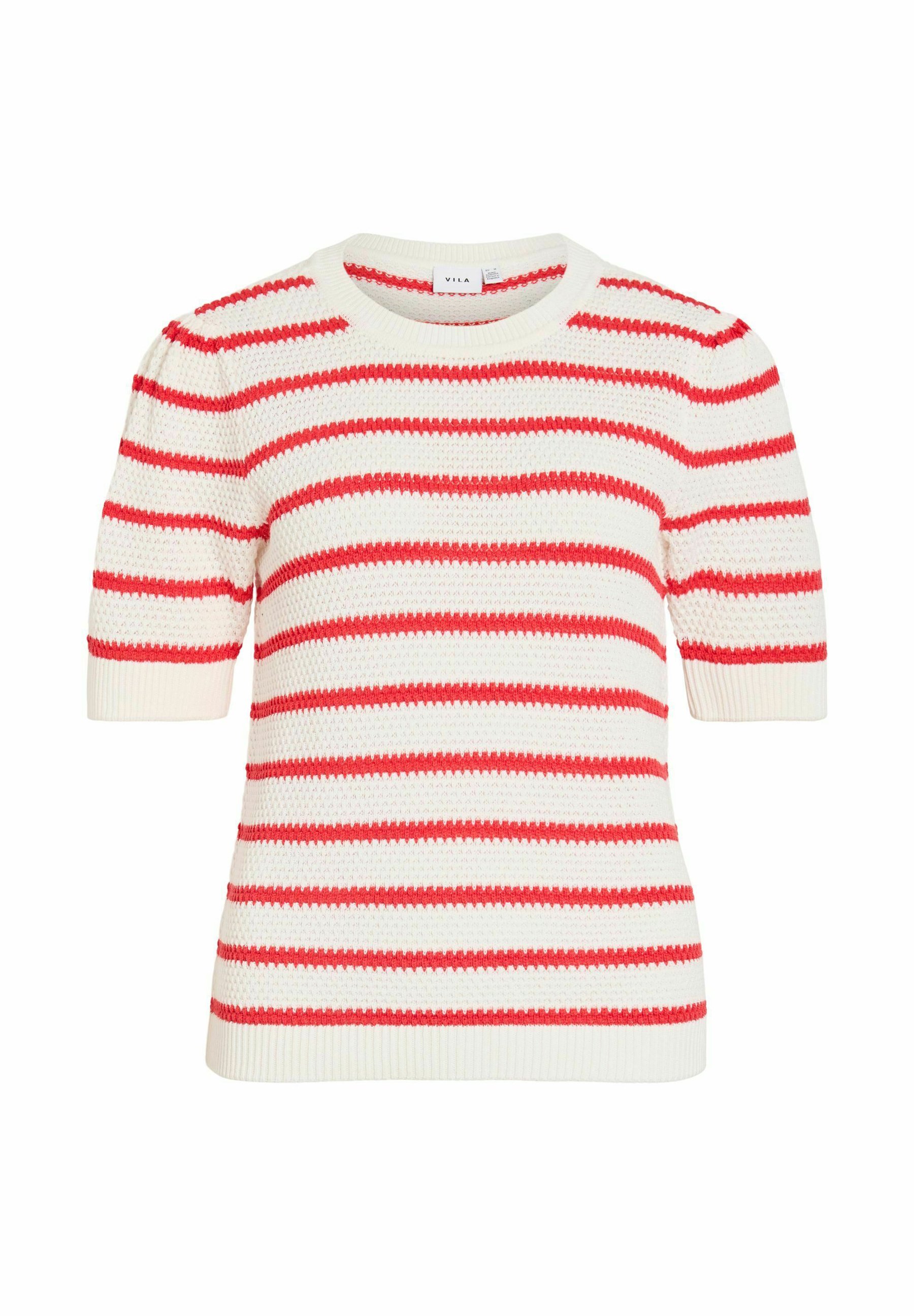 So ein gestreiftes Top bringt direkt Leichtigkeit in den Look. Die Kombination aus Weiß und Rot wirkt frisch und ein bisschen verspielt, ohne zu viel zu sein. Durch den leichten Strick fühlt es sich angenehm weich an und passt perfekt zu wärmeren Tagen. Ein Teil, das dem Outfit sofort etwas Lebendigkeit gibt und sich trotzdem ganz unkompliziert kombinieren lässt.