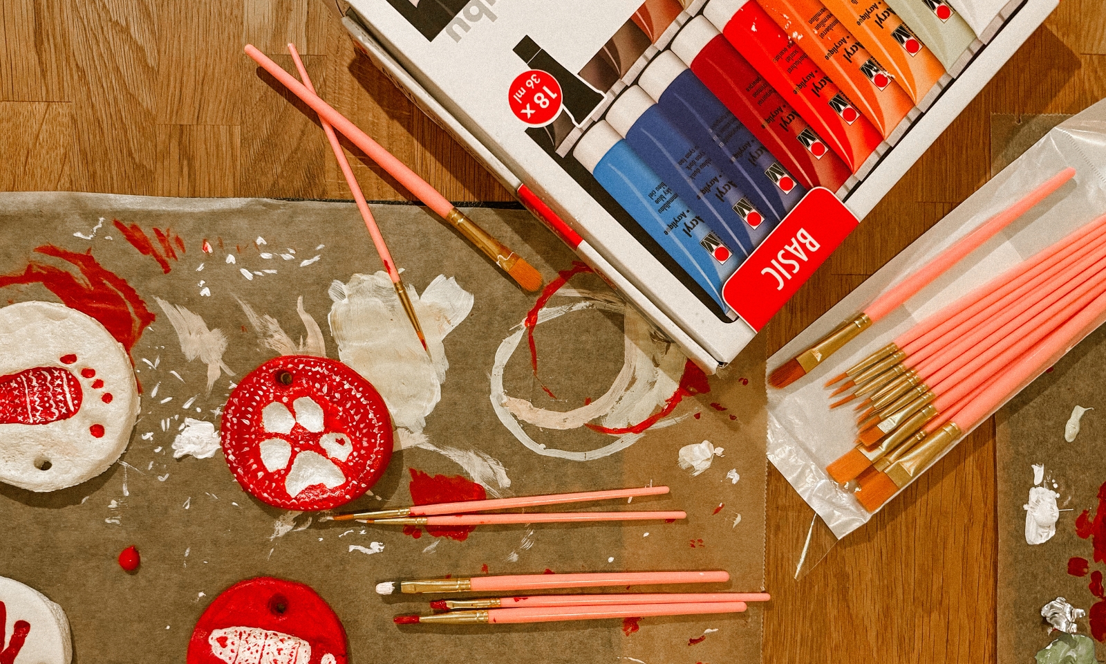 - Nach dem vollständigen Trocknen kannst du die Pfotenabdrücke mit Acrylfarben bemalen oder mit Klarlack versiegeln.