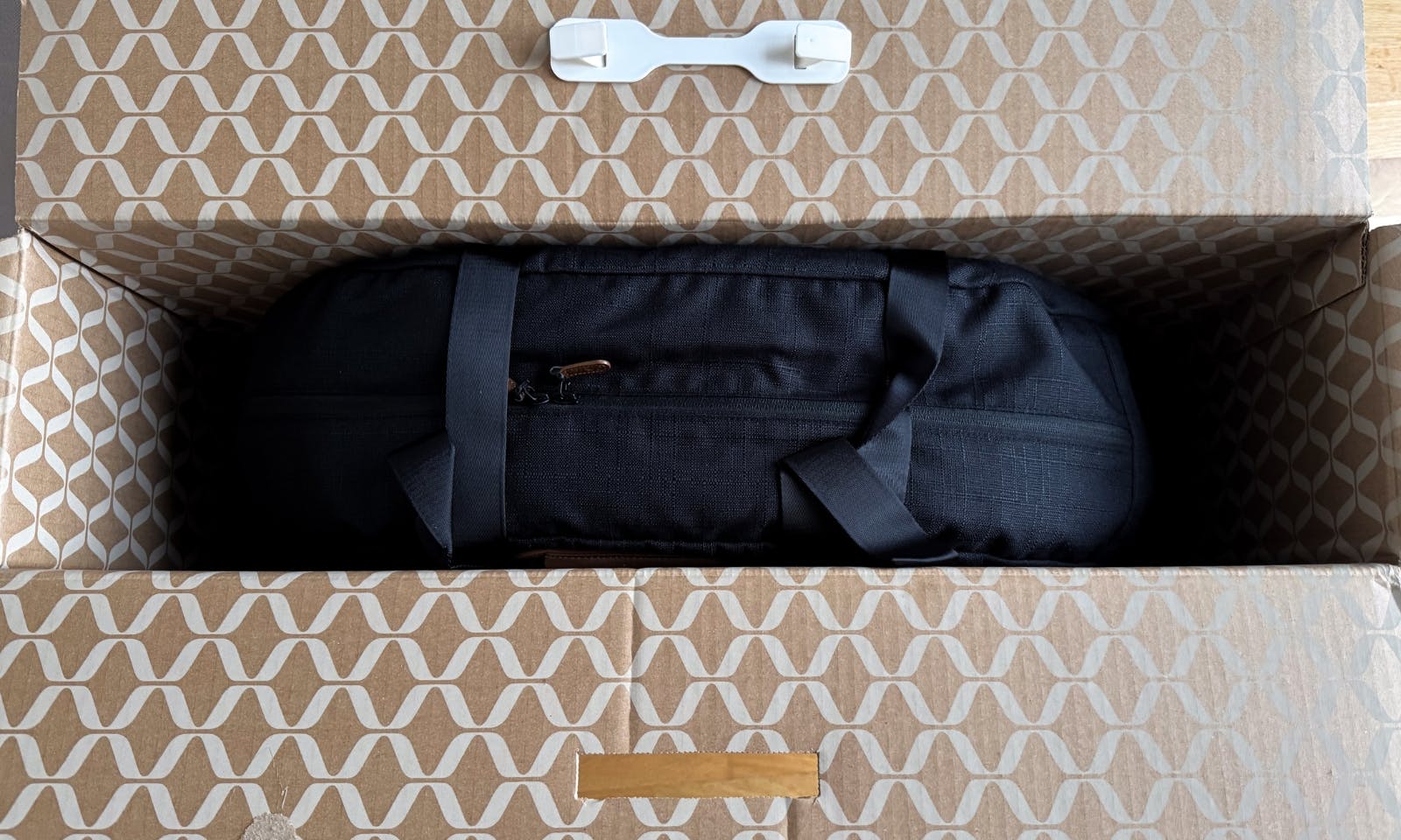 Ein weiterer Pluspunkt ist die Flexibilität. Die Crispin kann mit wenigen Handgriffen zusammengefaltet und in der mitgelieferten Transporttasche verstaut werden. So nimmt sie im Alltag kaum Platz weg. Durch ihr stabiles, halbstrukturiertes Design bleibt sie dabei formstabil, ohne sperrig zu wirken.