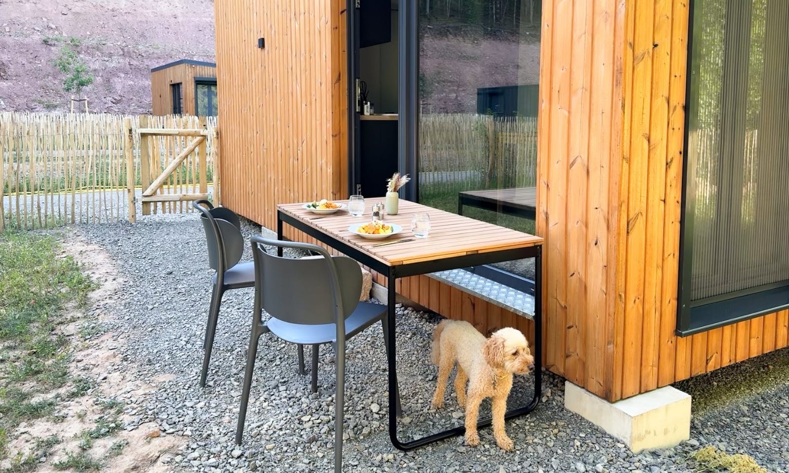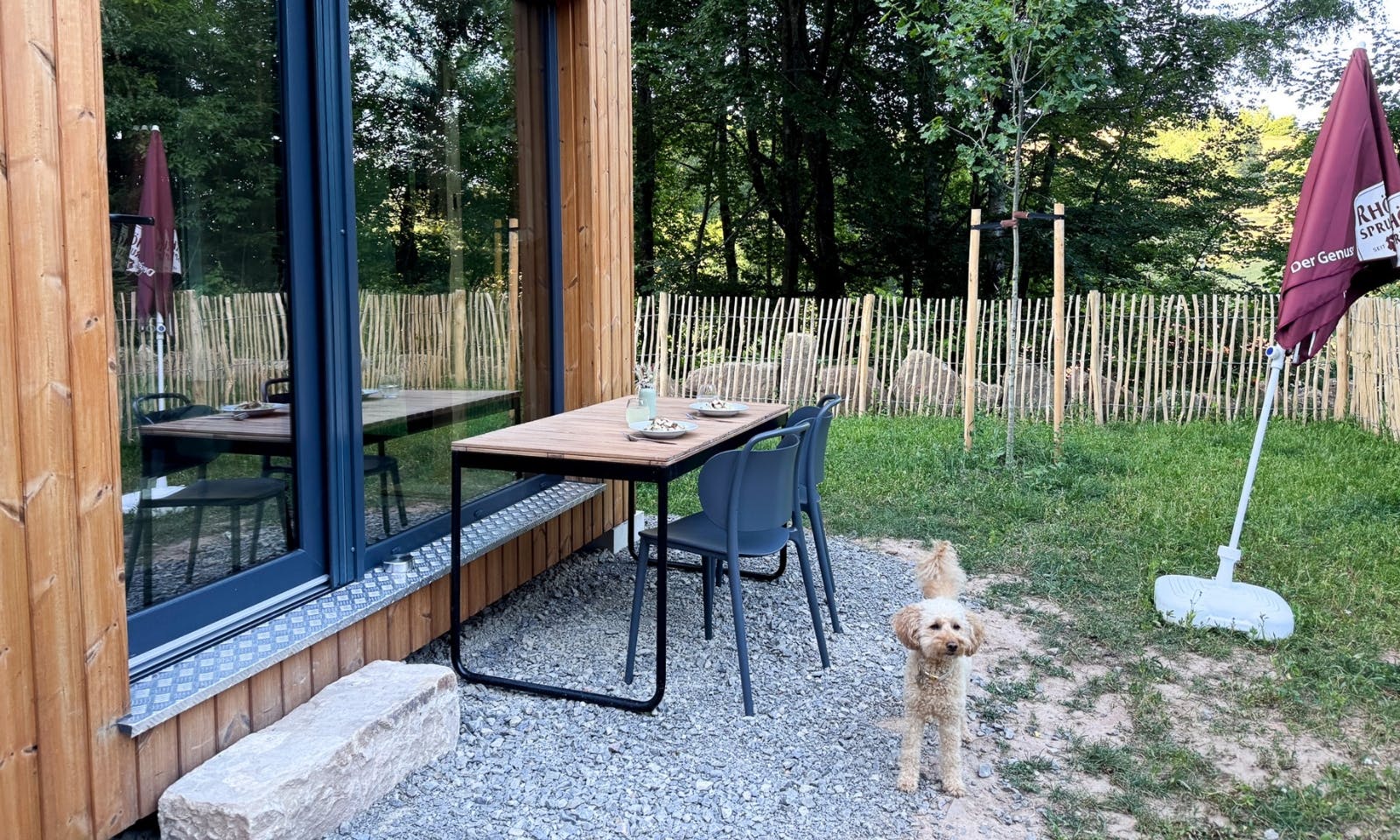 Was wir zum Essen genutzt haben, ist der Gartentisch mit den Stühlen. Insgesamt ist das DOGGIA Classic ein durchdachter, ruhiger Rückzugsort mit viel Gefühl für das, was Hundemenschen brauchen. Nicht luxuriös, aber hochwertig. Nicht riesig, aber stimmig.
