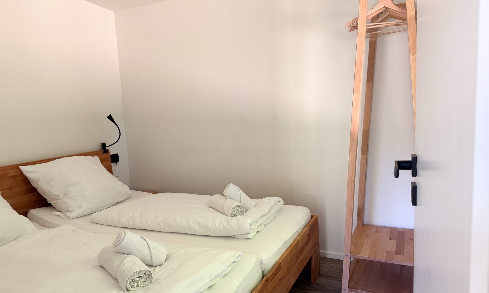 Was bei der Ausstattung auffällt, ist das Feingefühl. Steckdosen mit USB-C am Bett. Möbel aus Holz aus der Region. Fliegengitter an den Fenstern. Das ist durchdacht und nachhaltig.