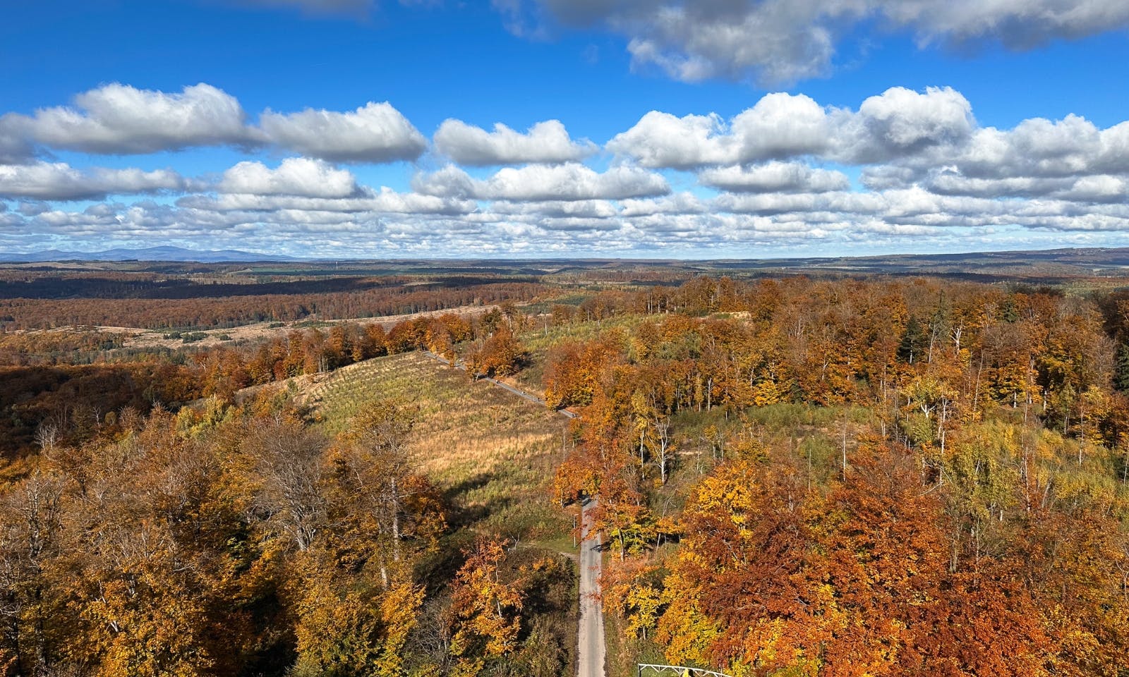Nicht nur oben auf dem Josephskreuz lohnt sich der Blick in die Ferne auch unterwegs solltest du immer wieder mal stehen bleiben und dich umdrehen. Schon auf dem Weg nach oben öffnet sich zwischen den Bäumen immer wieder der Blick über die sanften Hügel und Laubwälder des Südharzes. Besonders im Herbst, wenn die Blätter in warmen Farben leuchten, ist das ein echter Gänsehautmoment. Oben angekommen, wartet dann das große Finale: Weitblick pur, der zeigt, wie schön der Harz wirklich ist.