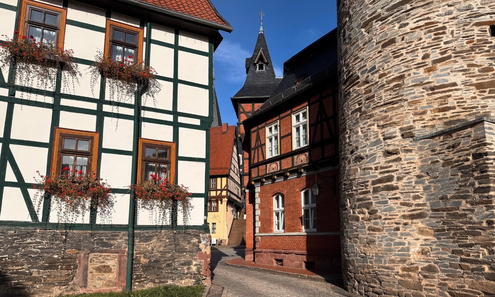 Was wir am FreiWerk besonders mochten: Man kann das Auto auch einfach stehen lassen. Vom Hotel aus kommt man direkt zu Fuß überall hin, egal, ob man gemütlich durch Stolberg schlendern oder eine kleine Wanderung starten möchte. Der Weg führt den Hang hinunter, vorbei an Fachwerk, alten Mauern und durch den kleinen Park. Wer mag, nimmt die Abkürzung durchs Grüne, dann ist man in wenigen Minuten mitten in der Altstadt.