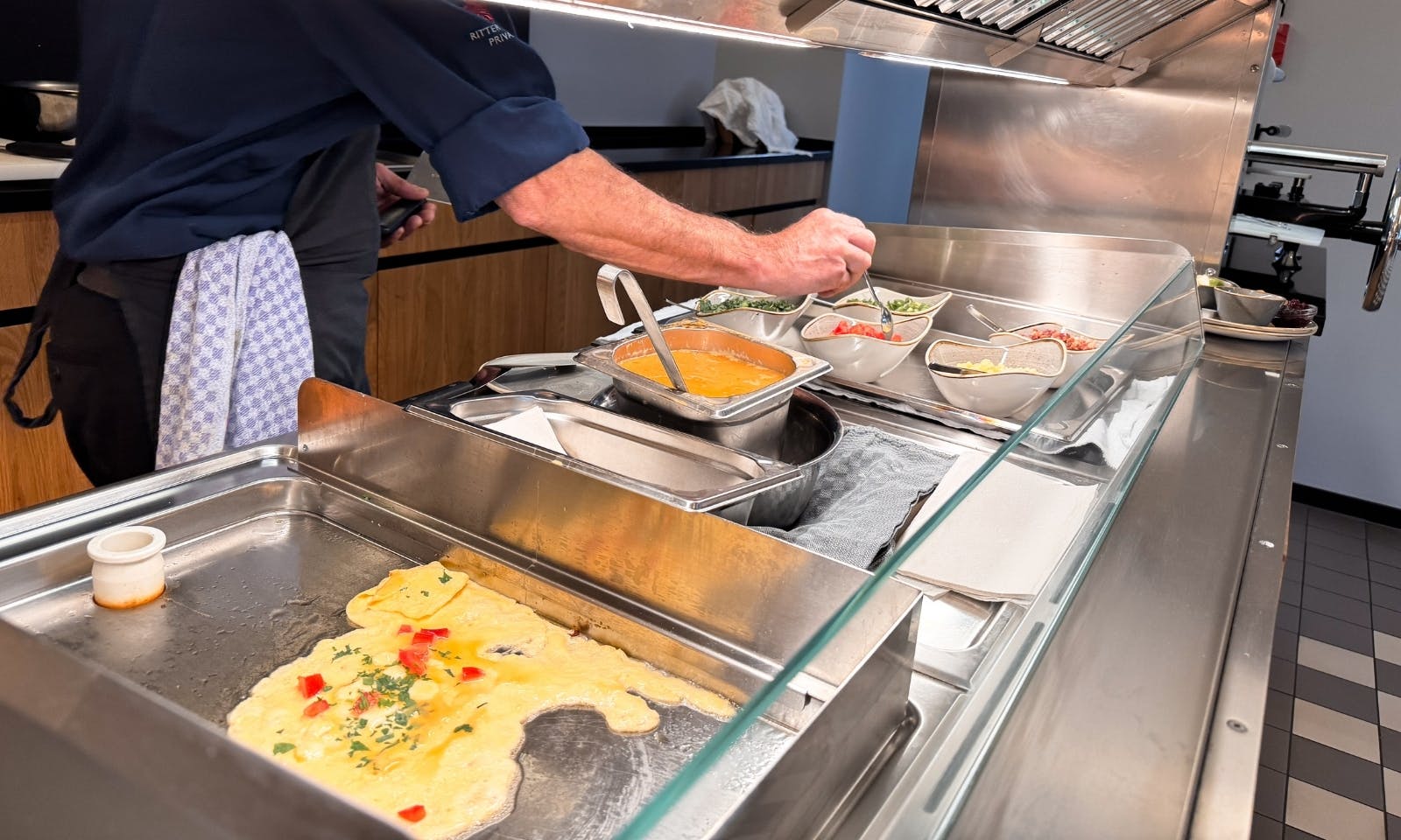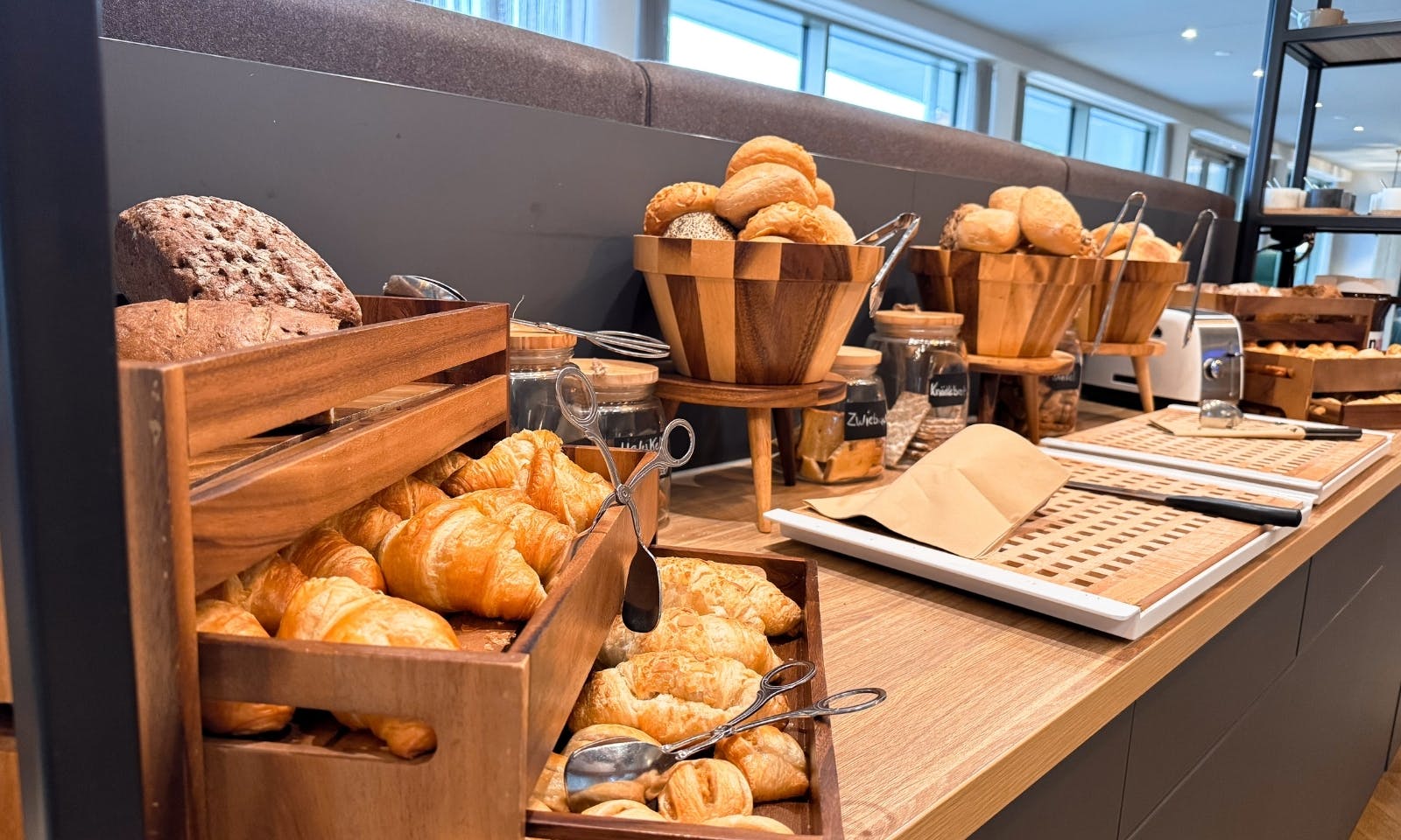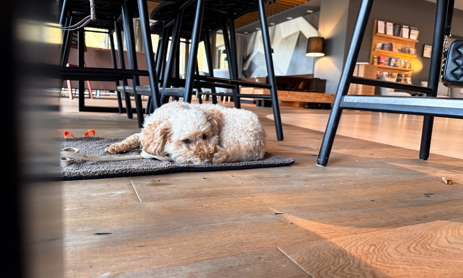 Was wir gut gelöst fanden: Im Restaurant selbst sind Hunde nicht erlaubt, aber es gibt in der Lobby eine schöne Alternative. Dort stehen Sofas und ein Hochtisch, an dem man gemütlich frühstücken kann. Wir haben uns einfach eine Decke mitgenommen, Java hat sich hingelegt, und während wir Kaffee getrunken haben, bekam sie direkt einen Napf mit Wasser. Für uns war das ehrlich gesagt ein super Kompromiss. Ruhig, entspannt und trotzdem zusammen.