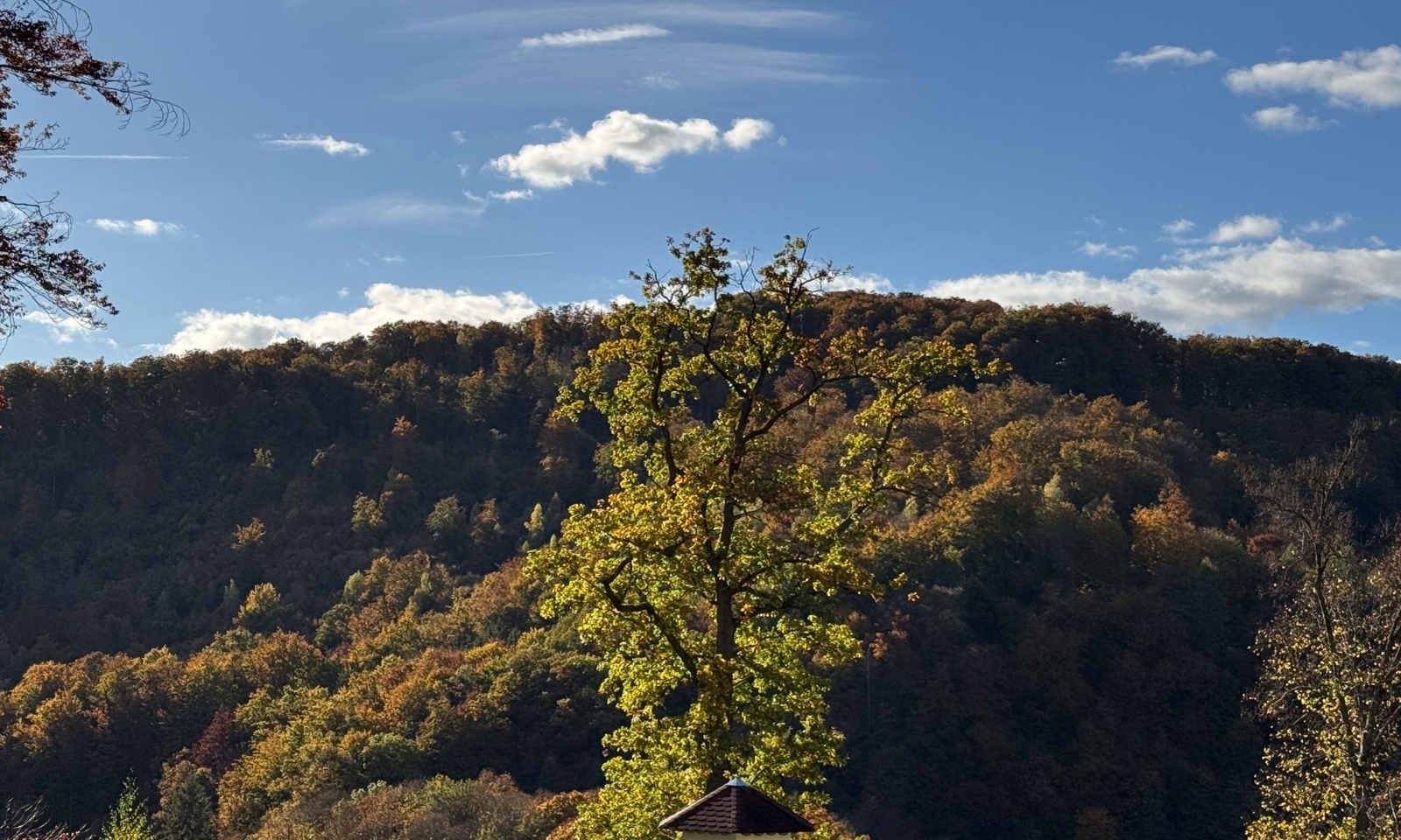 Auch praktisch: Du musst nur den kleinen Hügel hinab und schon bist du auf endlosen Wanderwegen. Perfekt für die erste Gassi-Runde am Morgen oder einen kurzen Spaziergang nach dem Abendessen. Im Herbst ist das besonders schön, weil die Laubbäume rund ums Hotel in allen Farben leuchten.