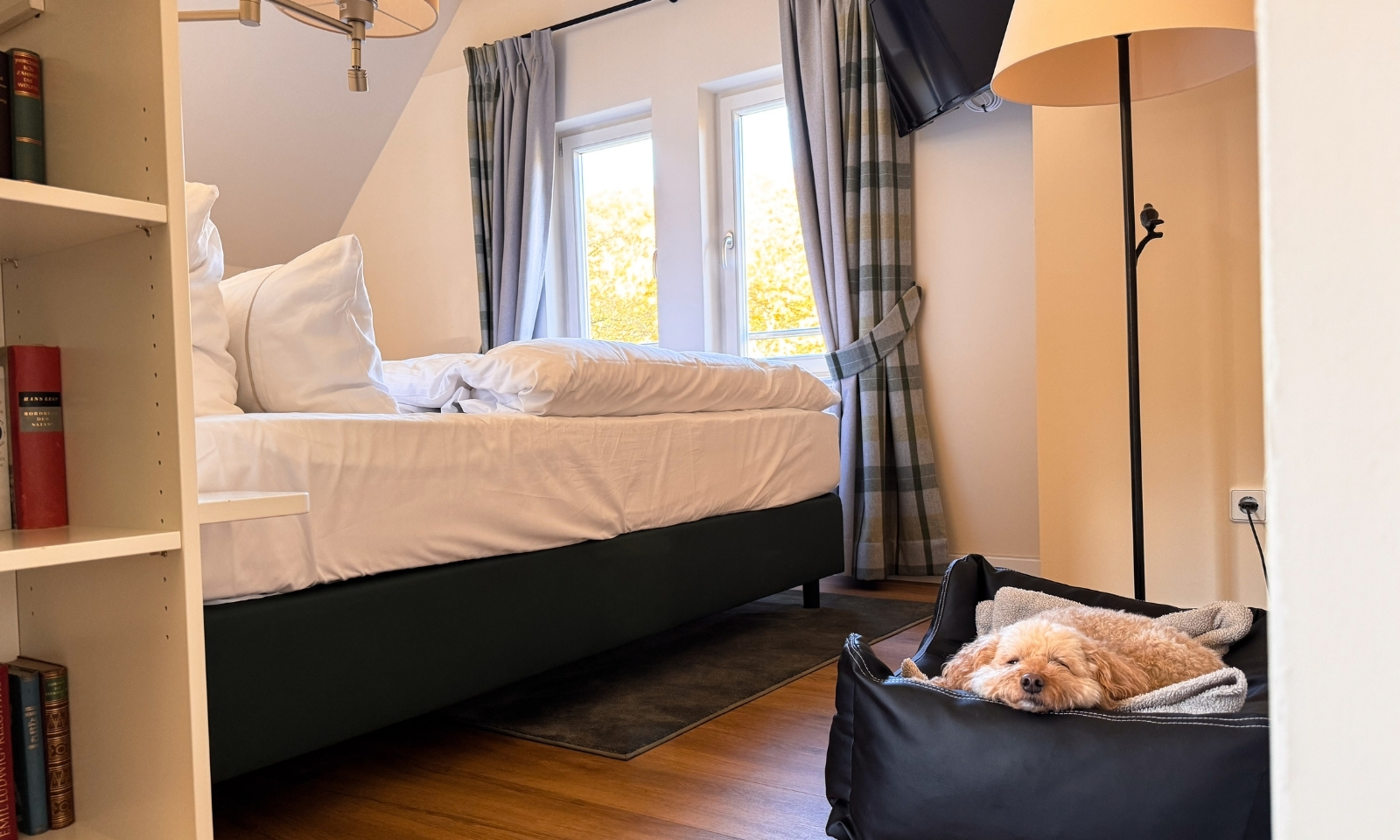 Was wir total wertschätzen: Es gibt im Zimmer ein kleines Schild mit der Info, dass ein Hund mitreist. Klingt unscheinbar, ist aber richtig gut, weil das bedeutet, dass kein Teammitglied einfach so das Zimmer betritt. Gerade, wenn man den Hund mal kurz allein lässt, ist das ein schönes Sicherheitsgefühl.